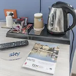Le camere dell'Hotel Italia sono dotate del Wi-Fi e una TV a schermo piatto con canali satellitari, nonché di un mini bar per la tua comodità. Dispongono anche di bagni condivisi con un bidet e un lavandino. Certe camere si affacciano sul giardino.